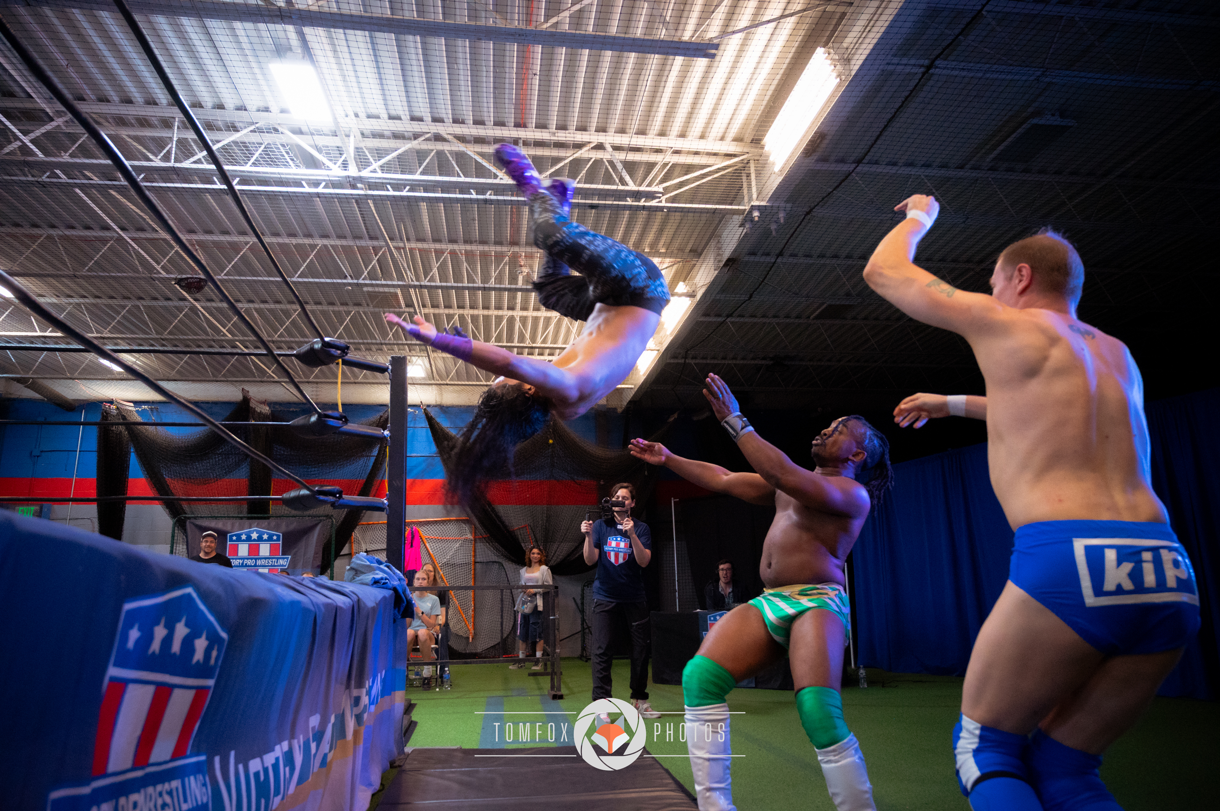 VPW Women’s Champion Tiphani Grady teamed with Valerie Verman against Kalypto and The Unwilting Tatiana. The woman scoring the fall would earn a future title opportunity. After a back and forth tag match that saw Grady and Verman isolate Tatiana, momentum shifted when Tatiana connected with a spear on Grady for the pin. Tatiana became the new No. 1 contender. Post match chaos erupted until Kalypto made the save with a kendo stick. Tatiana required medical attention afterward and was helped to the back.