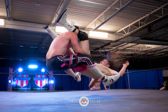 • La Pegasa makes her way to the ring for a showdown with the “Mother Nature of Professional Wrestling,” The Unwilting Tatiana. The two start with chain wrestling, with Pegasa gaining the upper hand and hitting a low dropkick for a two-count.