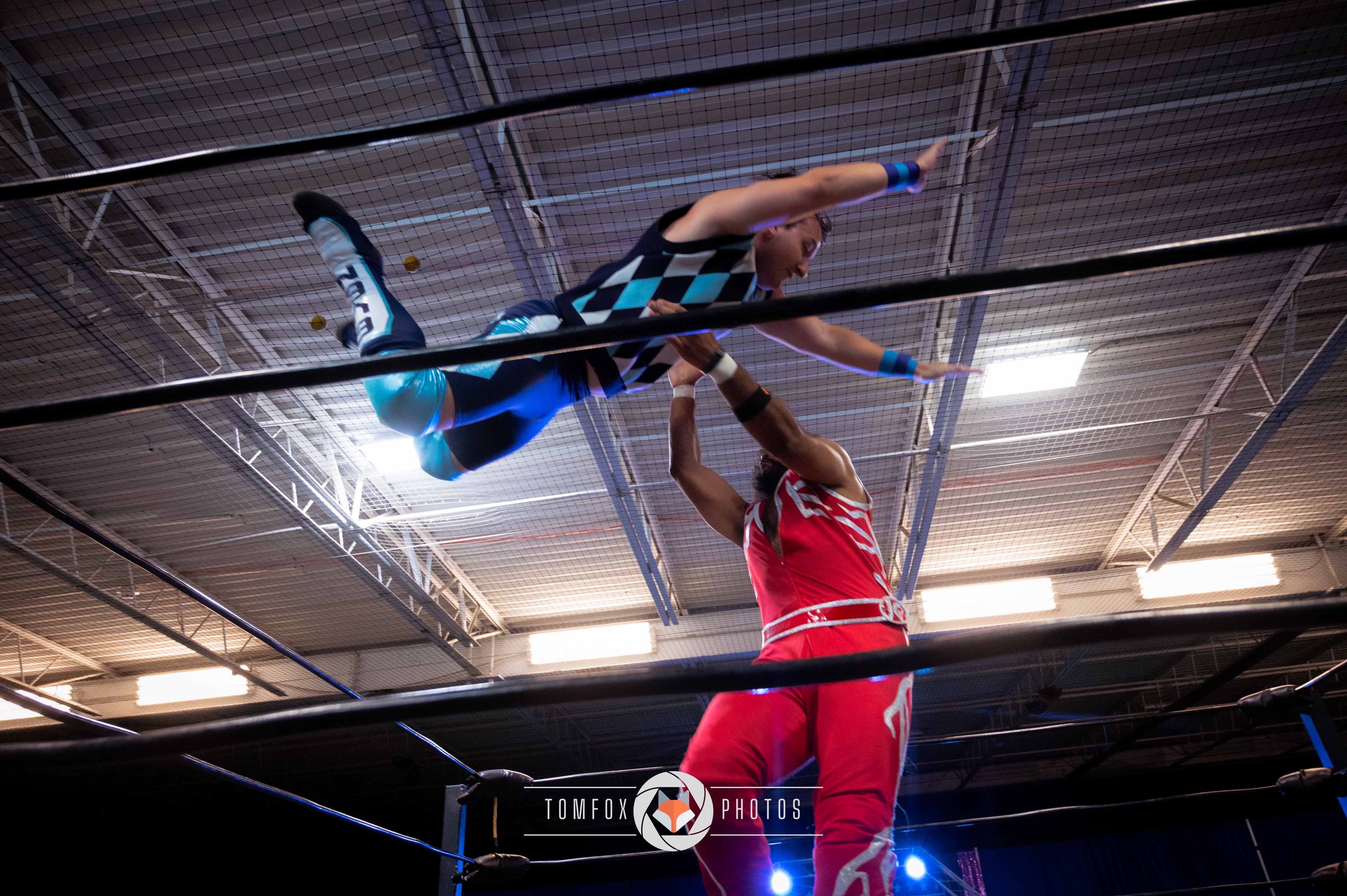 • Alvarez pulls down the straps and charges again, but Doze moves out of the way and takes Alvarez down with a tilt-a-whirl headscissors, sending him outside. Doze follows up with a front flip through the middle rope.