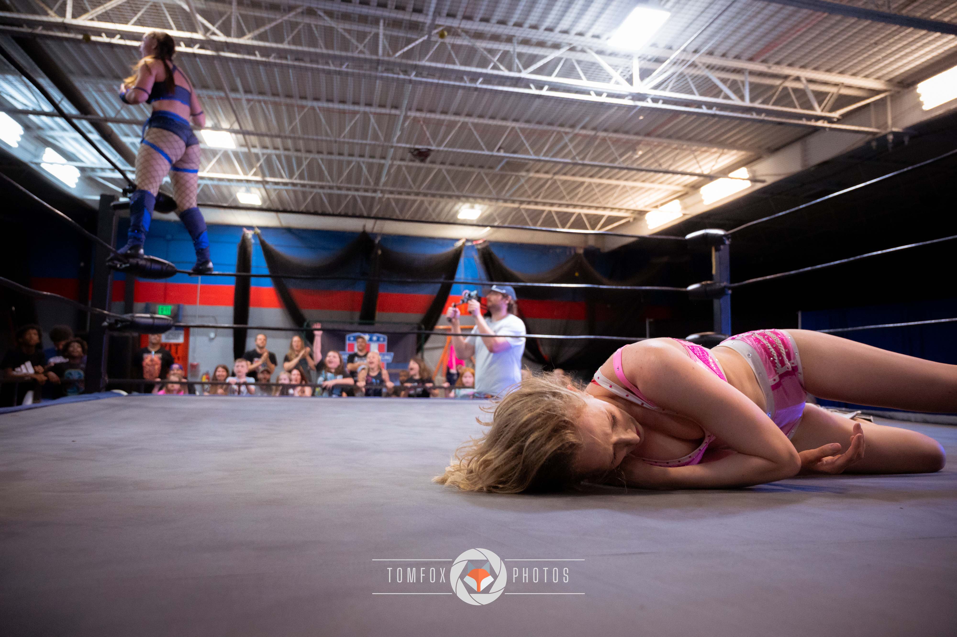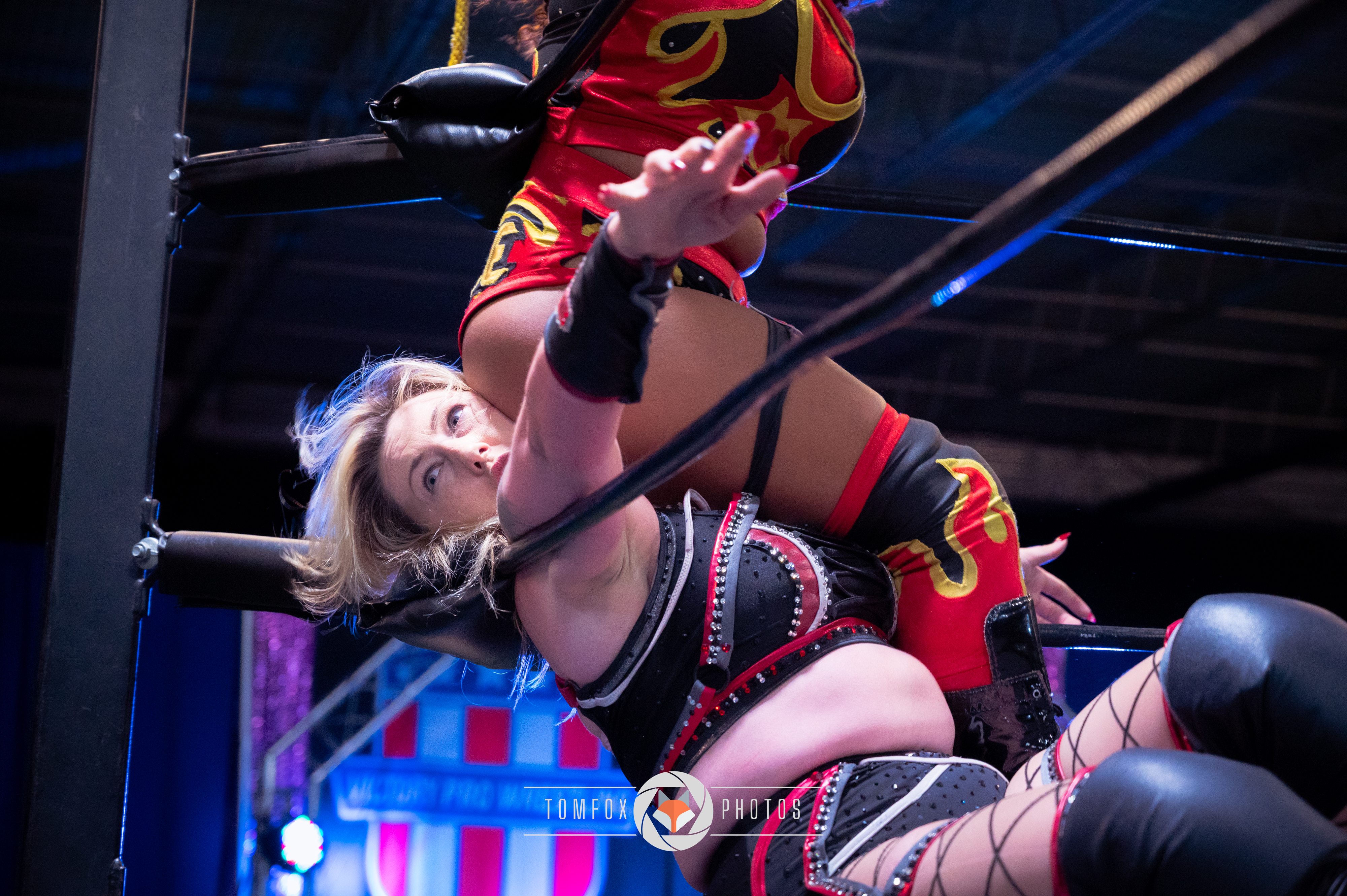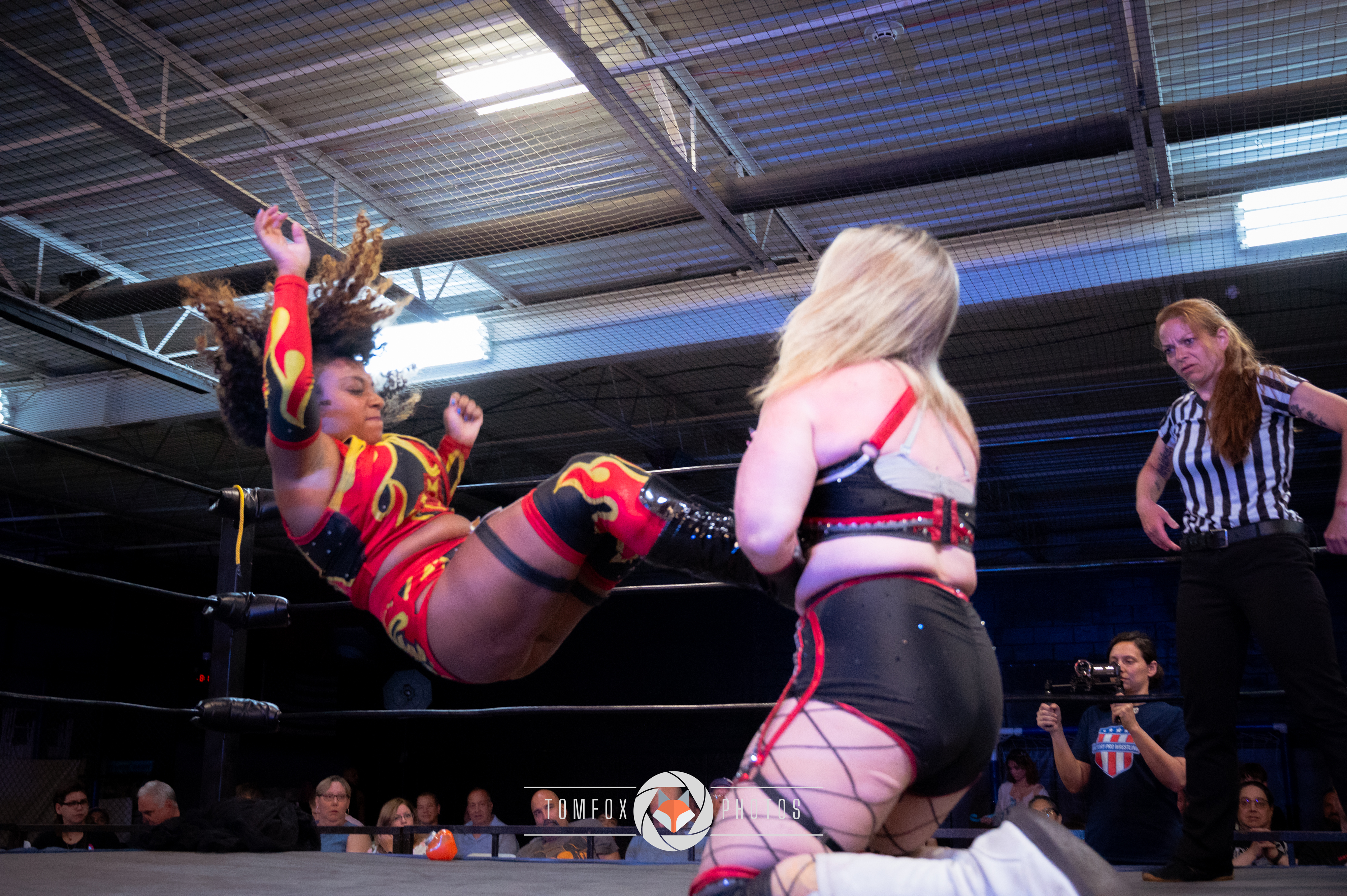 • Pegasa sidesteps a charging Tatiana and hits a running elbow in the corner, followed by a springboard cutter for a near fall. Pegasa goes high-risk but misses, allowing Tatiana to hit her finisher for the three-count.