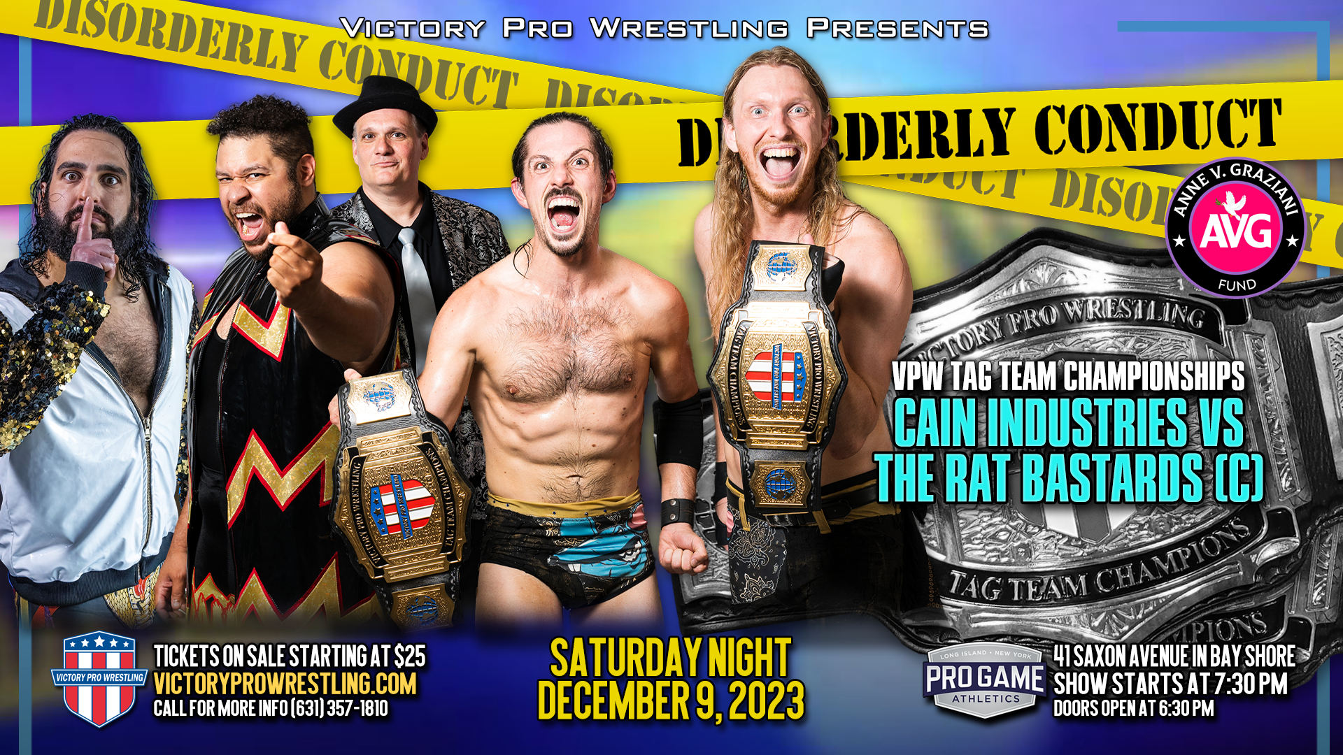 What will happen when Victory Pro Wrestling returns to Pro Game Athletics in Bay Shore Saturday night December 9 for the last show of 2023 VPW 171: Disorderly Conduct?