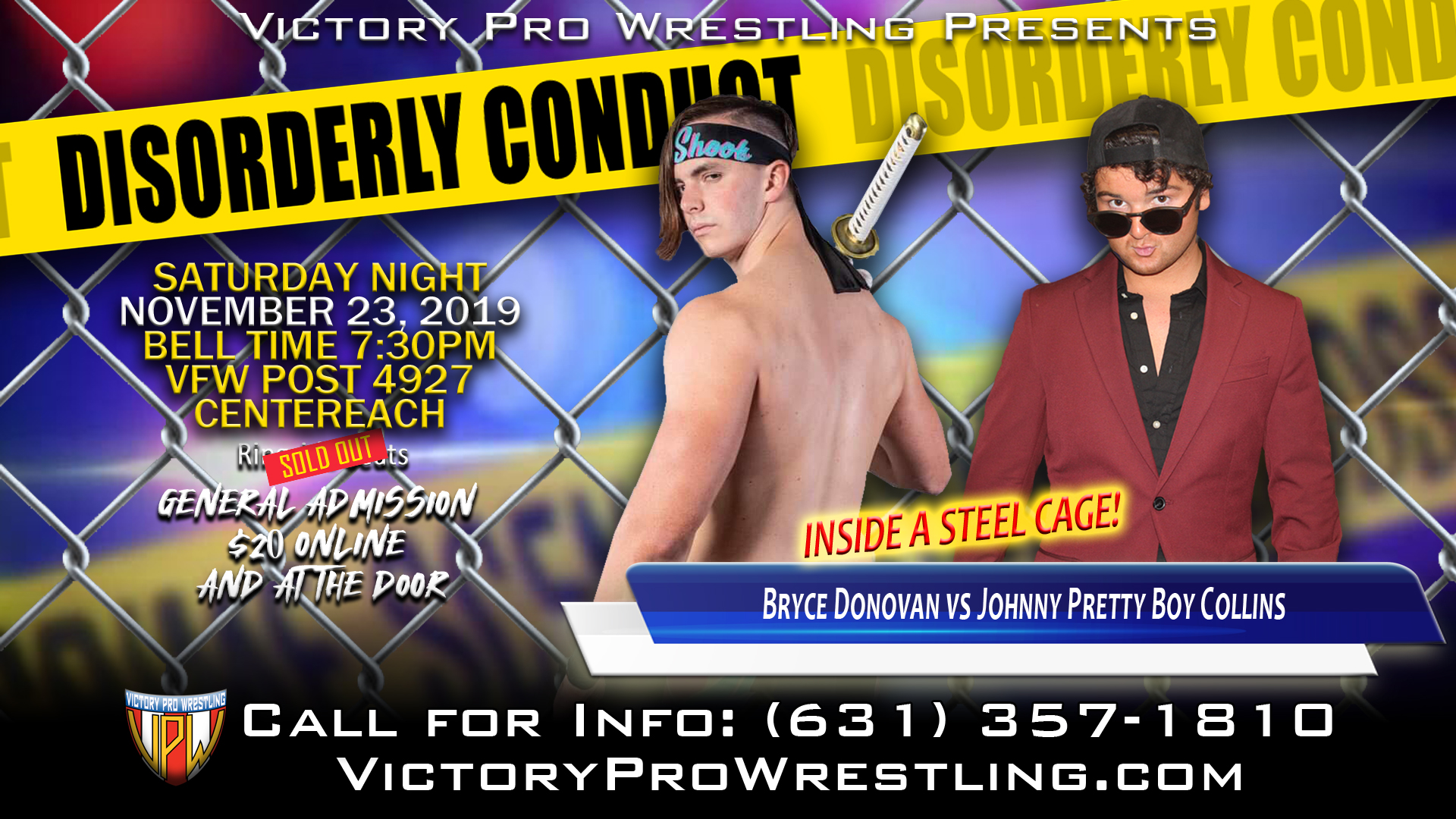 While the cage has made its presence felt, ending feuds and settling scores many times over, it will be the first time in Victory Pro Wrestling history where two matches will be fought inside the confines of a 15-foot high steel cage on the same night.