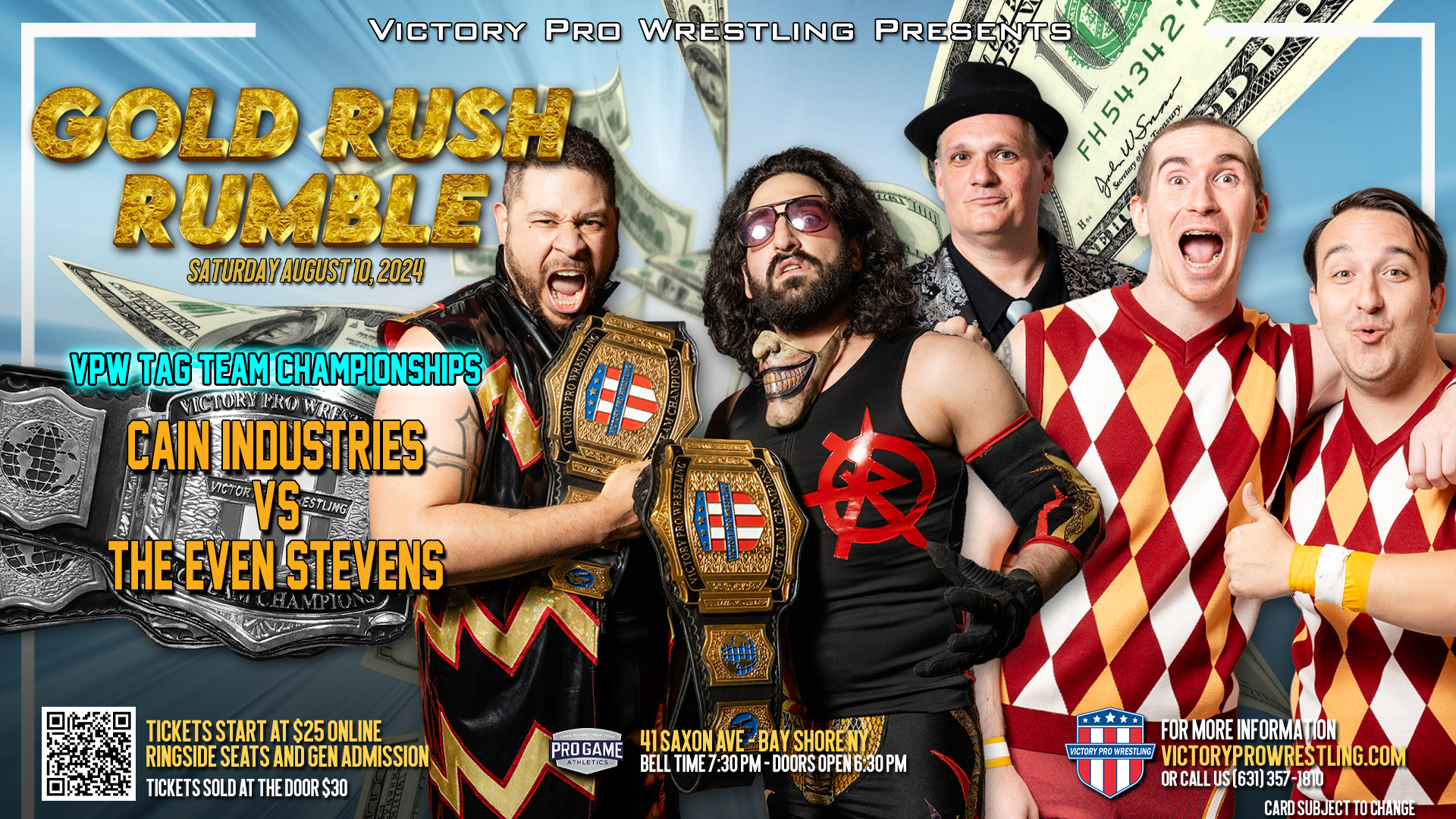 What will happen when Victory Pro Wrestling returns to Pro Game Athletics in Bay Shore Saturday night August 10 for VPW 178: The Gold Rush Rumble?