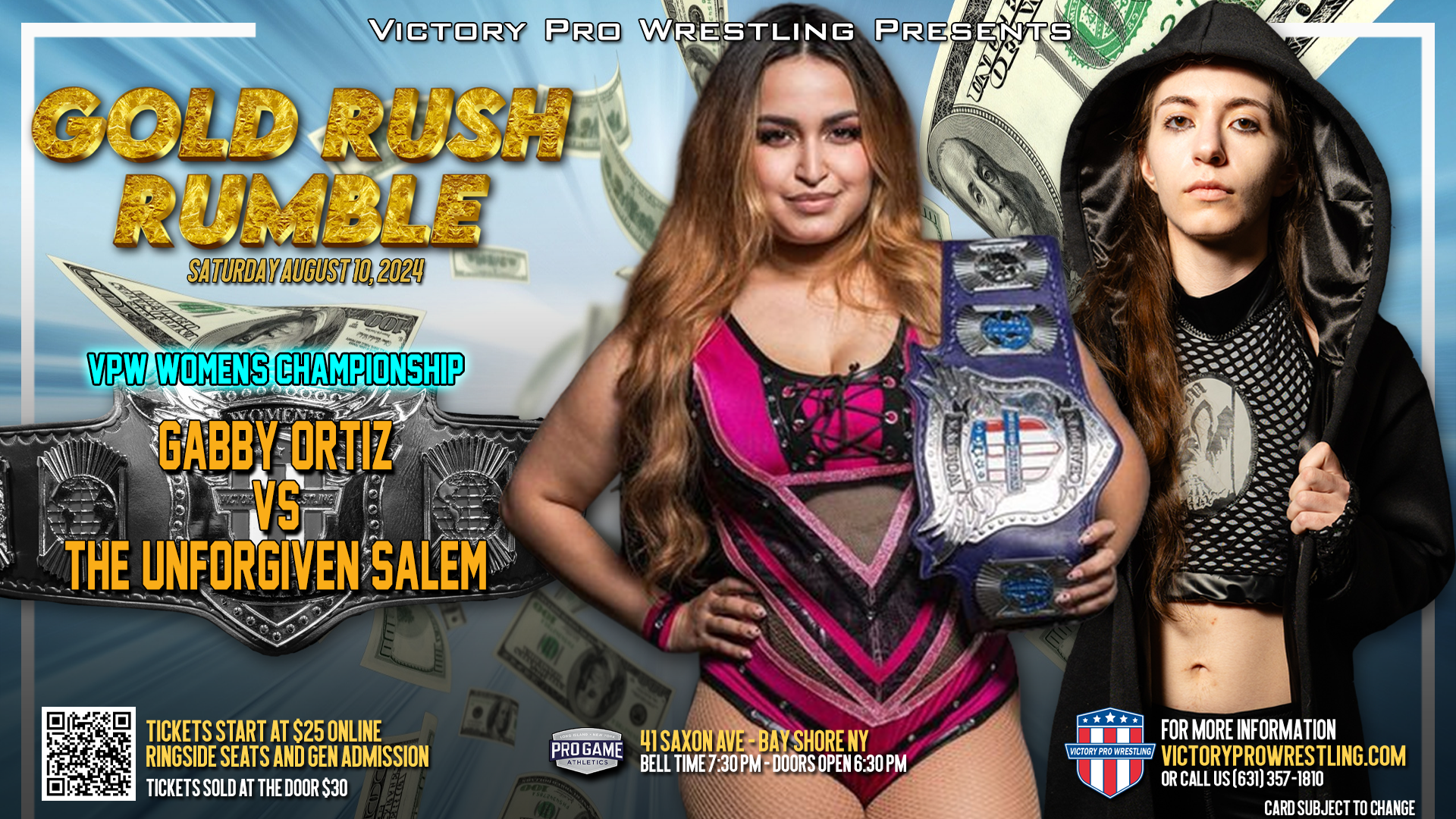 Ortiz’s journey as VPW Women’s Champion has been nothing short of impressive. She successfully defended her title against Tiffani Avatar at VPW’s Battle in Bay Shore and against Nahir Robles and Vicious Vicki at Belle to Bell’s “Liberty Belle” event. Her impressive track record sets the stage for a showdown at the Gold Rush Rumble.