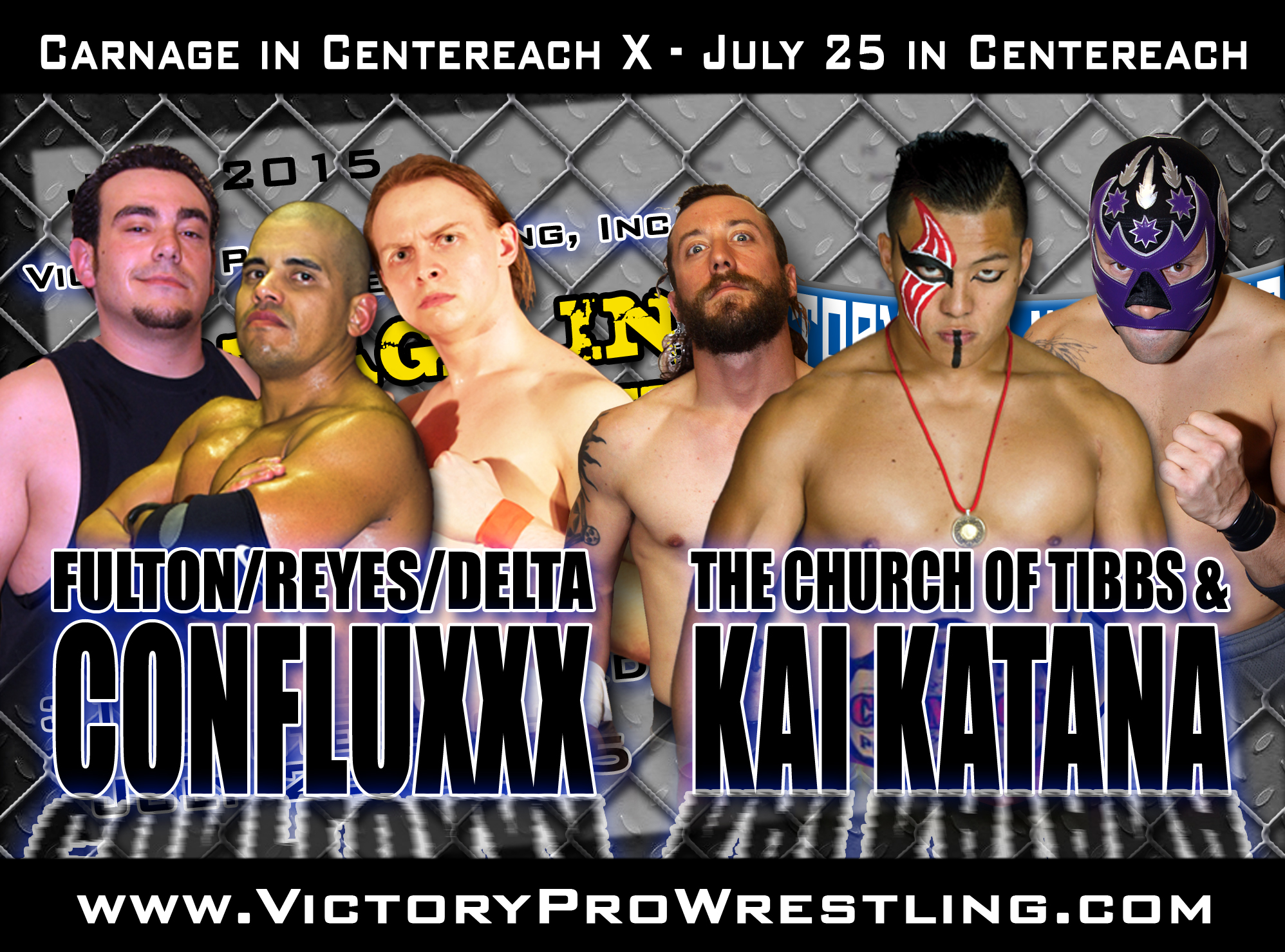 Tired of being attacked by ConfluxXx, both Victory Pro Wrestling Champion Kai Katana and Kevin Tibbs’ Church of Tibbs team up to take on ConfluxXx in a Steel Cage Survival match this Saturday night in Centereach.