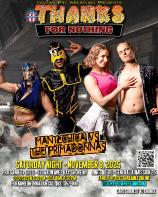 Victory Pro Wrestling returns to Pro Game Sports in Bay Shore on Saturday night, November 8, 2025 for Thanks.. for Nothing