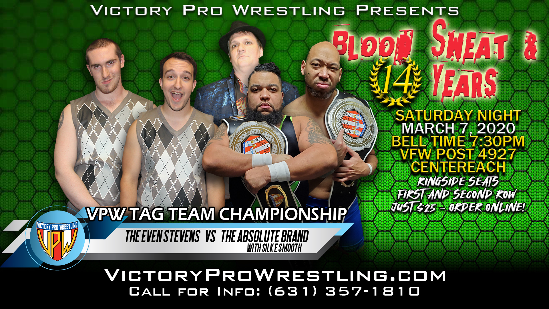 It’s Victory Pro Wrestling’s anniversary show celebrating 14 years of exciting wrestling action on Saturday night March 7!