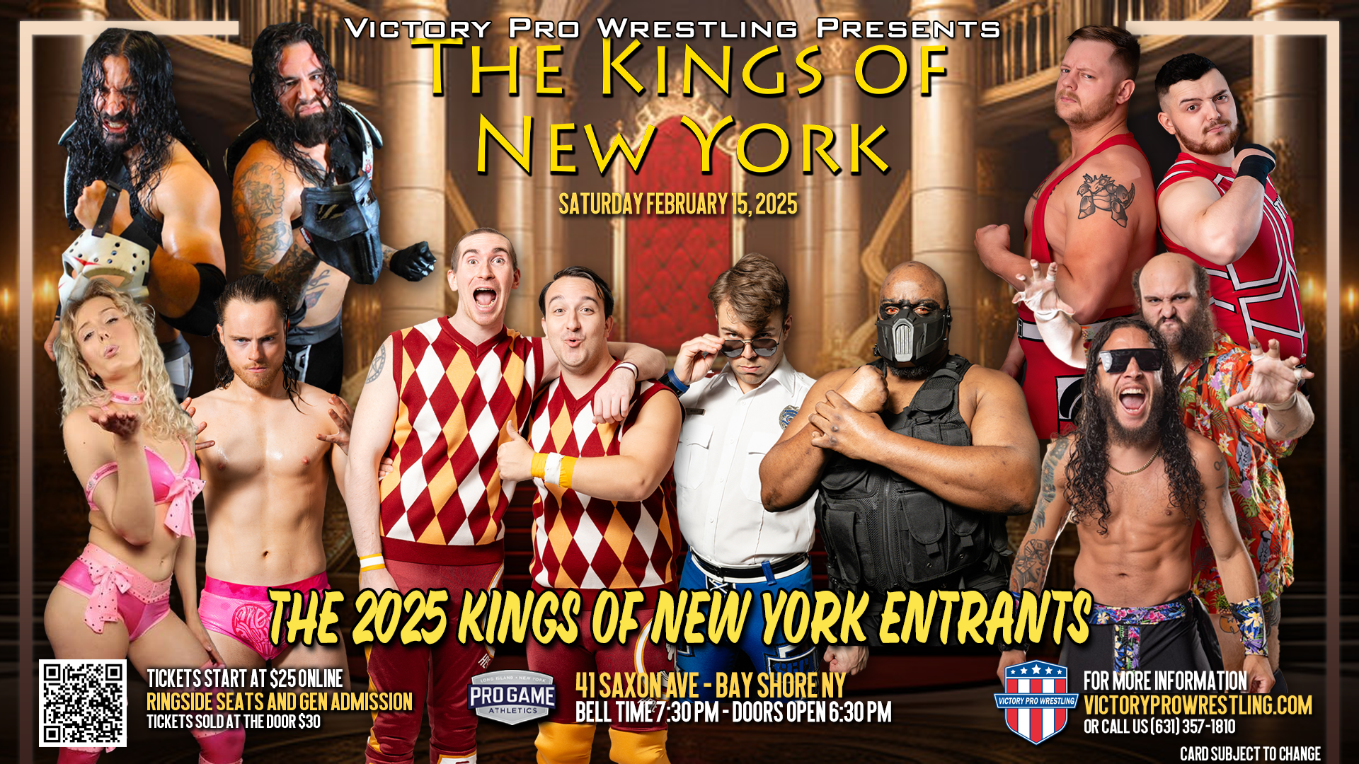 Victory Pro Wrestling returns to Pro Game Athletics in Bay Shore on Saturday night, February 15, 2025 for VPW 184: The Kings of New York