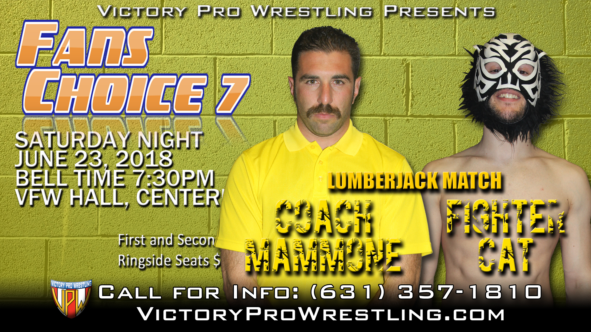 But with your votes, Fighter Cat will get his claws into Coach Mammone, and with VPW stars surrounding the ring, there will be no place to run or hide for the still-undefeated Greatest Coach of All Time.