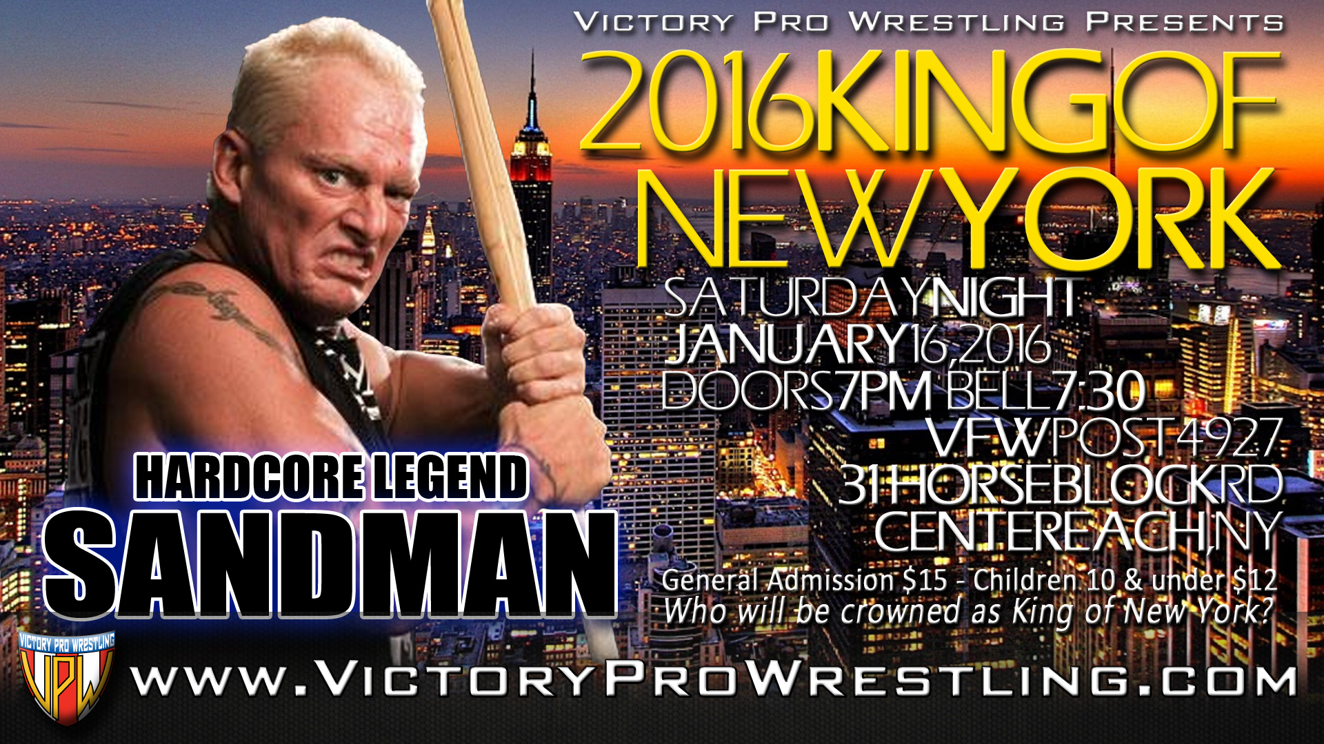Come meet the five time ECW World Champion when Victory Pro Wrestling returns to Centereach!