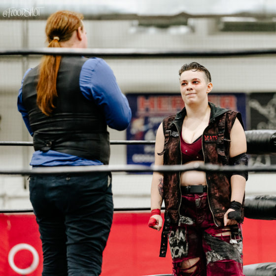 Megan Mason makes her way out to the ring first. She is followed by a VPW official. The official says that Valentina couldn’t make it to the show tonight, and Mason was pissed. Mason wants a fight and the official calls for someone who can make it happen. Nobody answers the challenge.
