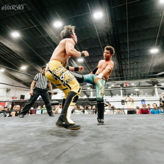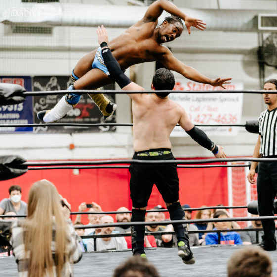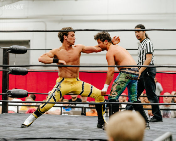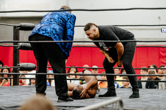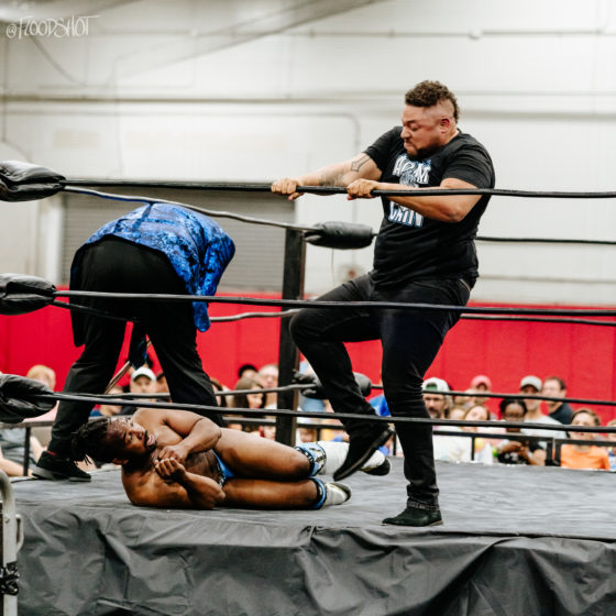 Azure tags in and Bryce continues taking the fight to both Stevens. He takes out both men with a double clothesline. Bryce tags in Orlando as Orlando continues remaining in control of the match. The match seemed to be firmly going in the Shook Crew’s favor.