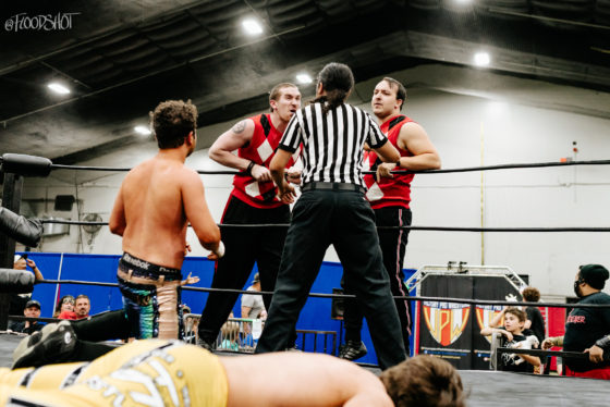Donovan comes in hot and takes both members of the Even Stevens out. He calls for a big move, but Collins once again distracts the Shook Crew. Somerset hits Donovan with a big move for a two-count. Collins goes to hand Somerset the VPW Tag Team Championship belt, but the referee catches him.