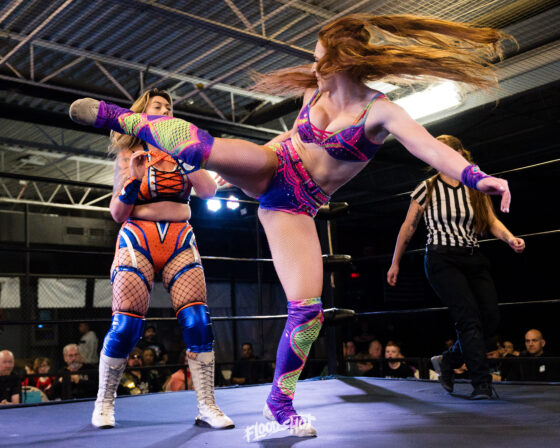Originally scheduled as a triple-threat, Kalypto stepped up in Nat Castle’s absence and delivered a breakout performance. The bout featured nonstop action until a distraction by Valerie Verman’s entrance music threw Tatiana off – similar tp how Valerie was distracted at Haunted Ground by Tatiana’s music – allowing Kalypto to score the victory and earn a championship opportunity in December. After the match, Valerie, Samwell, and Tiphani lead an attack on Tatiana afterall, but Kalypto made the save.