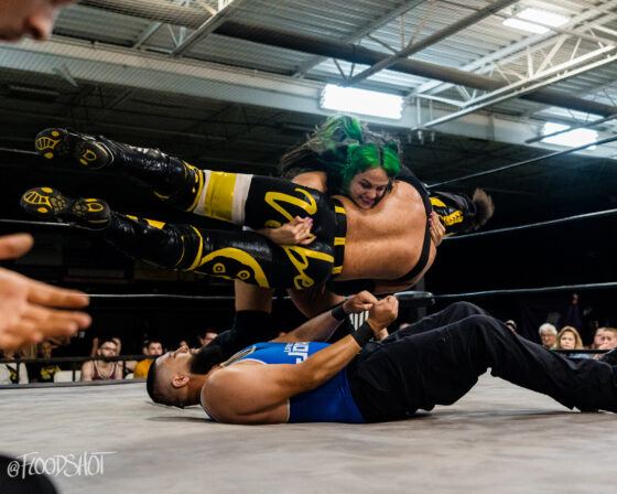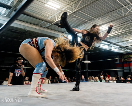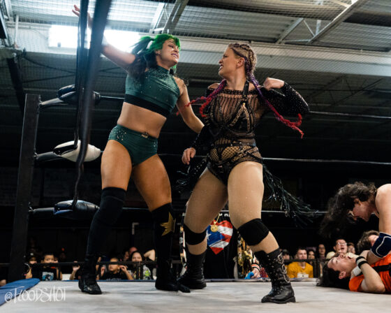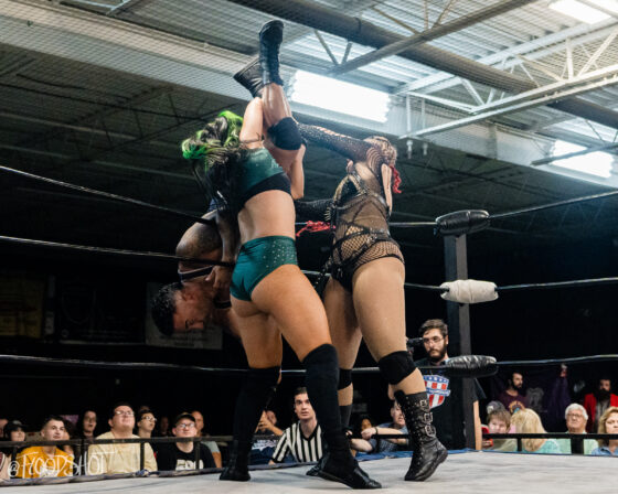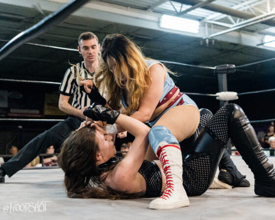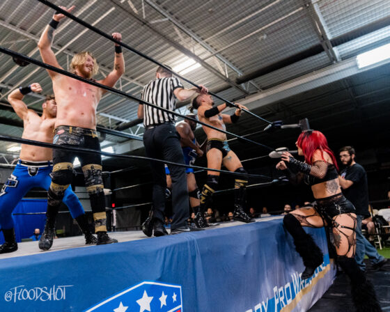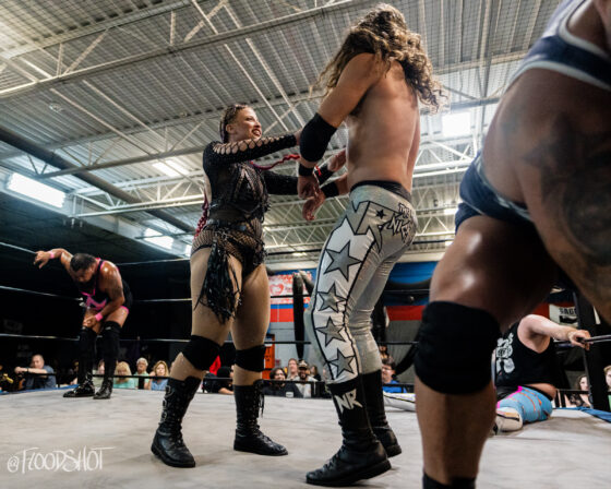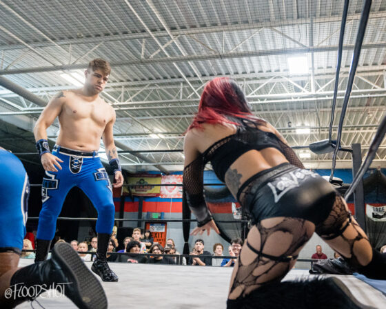 The match starts quickly with the Rat Bastards and Security Inc. brawling all around the ring and ringside area. Security Inc. stands tall in the early going, as the Rat Bastard’s are forced to regroup on the outside. However, this quickly changed when Amity LaVey low-blows Malcolm Murray, and the fight between these two teams spilled over into the crowd. LaVey continues to get involved, which draws out Scarlett Meidan. What was supposed to be a two-on-two match turned into a six-person tag team match. The match officially begins with LaVey and Meidan as the legal competitors brawling in the ring.