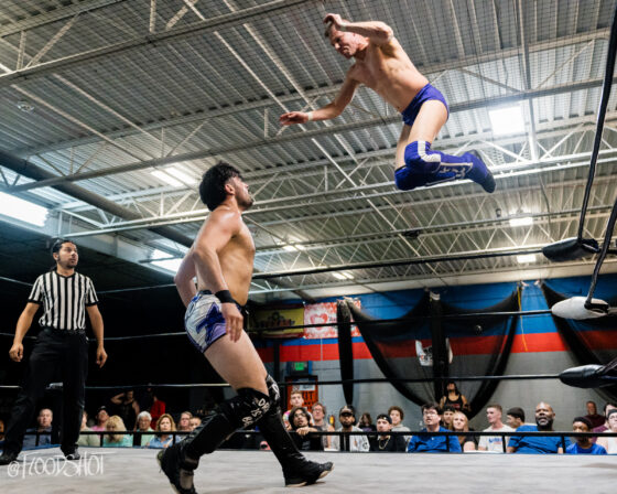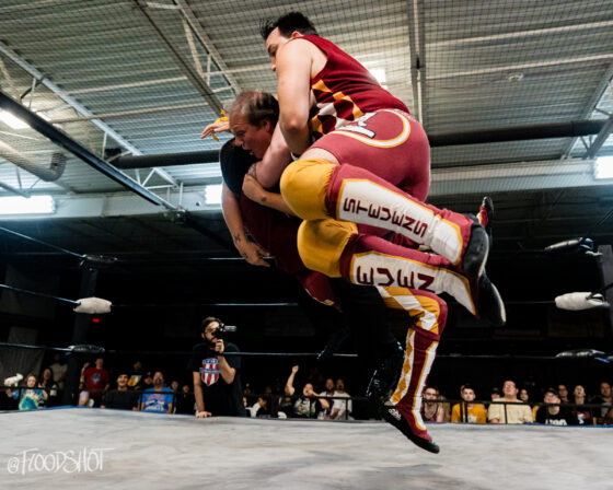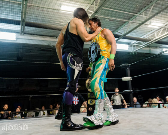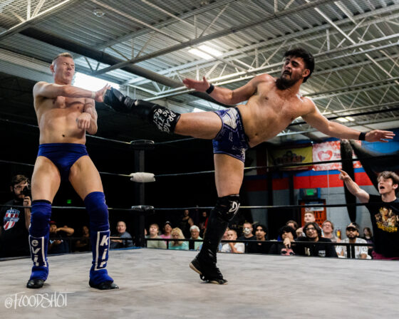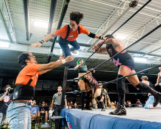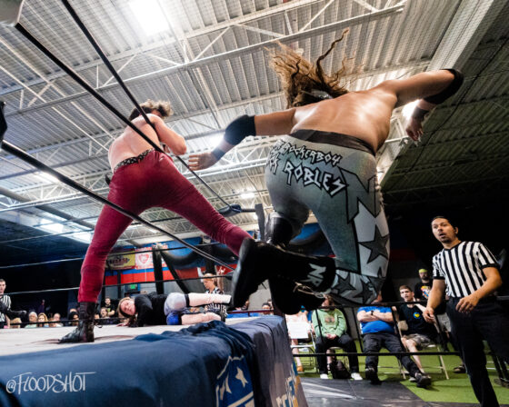 Ken Powers enters the fray at number 17. Everyone left in the match tries to get the jump on Powers, but unfortunately for them, it doesn’t end well as Powers explodes and everyone goes flying off of him. Powers gets Alvin on his shoulders and does a helicopter spin. Nahir Robles and Cosmic brawl on the apron, with both of them eliminating each other after a great showing in this match. VPW legend, Jay Delta, enters the ring at number 18. Delta eliminates Powers and then squares off with Nick Robles.