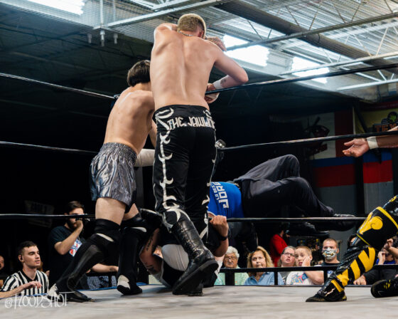 Ultimately after more great back-and-forth action, the Even Stevens called for Steven Flow. However, Smooth enters the ring and eats the finisher instead. This allows Gangone to land his finishing hold on the face of Somerset, forcing his shoulders to the mat for the three-count.