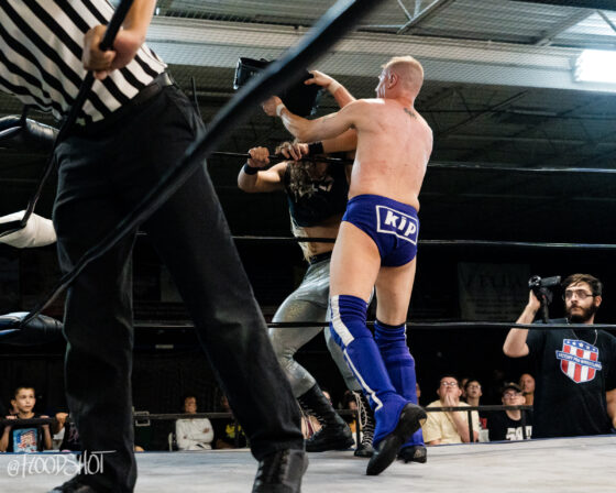 LaVey tags in Adam Kirkland, while Meidan makes the tag to Murray. Murray challenges Kirkland to hit him, to which Kirkland obliges. Murray quickly says, “MY TURN B*TCH” and unloads on his adversary. Murray and Ronnie Moses go to work on Kirkland in their corner, separating one-half of the Rat Bastards from his partner. However, a distraction from Zander Torres allows Kirkland to land a huge clothesline on Moses and change the tides of this match. The Rat Bastards control a good portion of this match.