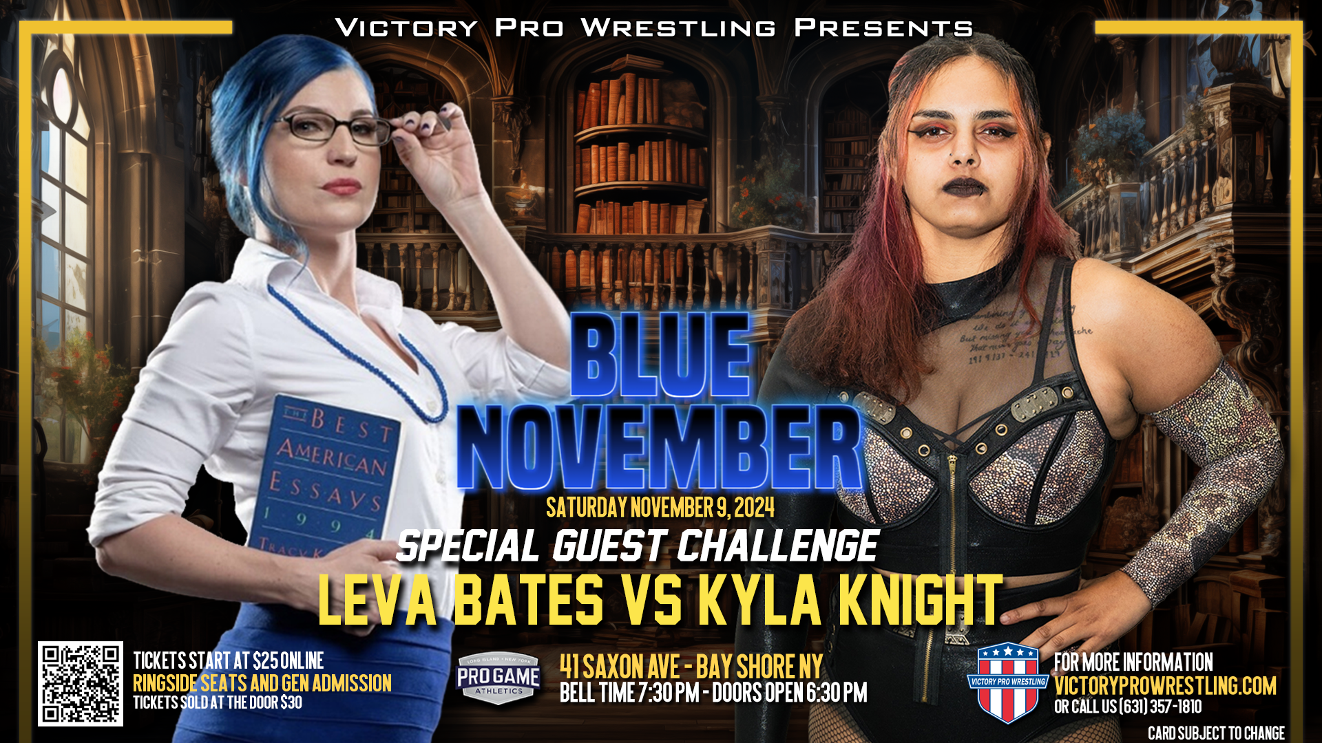 What will happen when Victory Pro Wrestling returns to Pro Game Athletics in Bay Shore Saturday night November 9 for VPW 181: Blue November?
