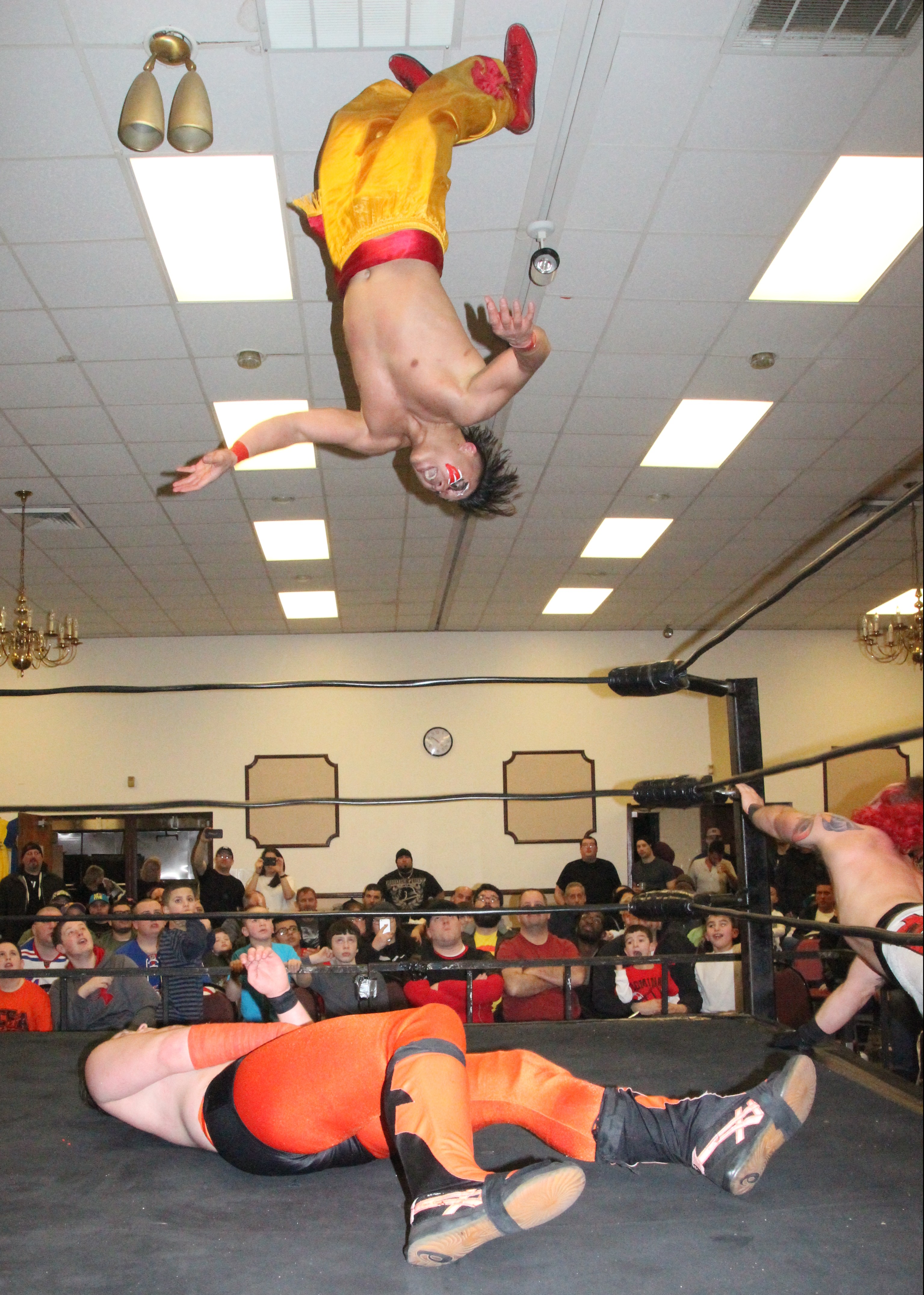 That would bite him later on as he used the knuckles on El Destructico. The official saw something and demanded to see what AO had. After a couple of behind-the-back switches, AO dropped the knucks and was eliminated. Fighter Cat then eliminated El Destructico.