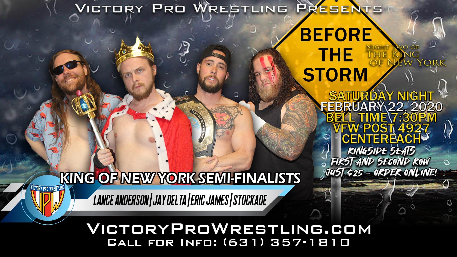 The semi-finals of the King of New York show will continue when Victory Pro Wrestling returns to Centereach at Before the Storm on Saturday February 22. Who do you think will advance and become the new King of New York?