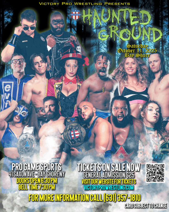 Victory Pro Wrestling returns to Pro Game Sports in Bay Shore on Saturday night, October 11, 2025 for Haunted Ground