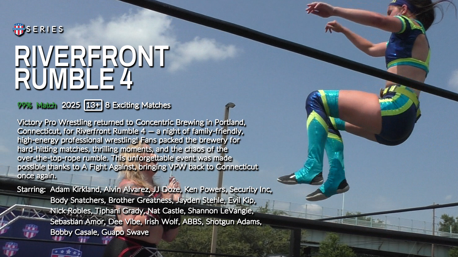 Victory Pro Wrestling returned to Concentric Brewing in Portland, Connecticut, for Riverfront Rumble 4 — a night of family-friendly, high-energy professional wrestling! Fans packed the brewery for hard-hitting matches, thrilling moments, and the chaos of the over-the-top-rope rumble.