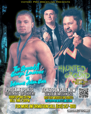 At Haunted Ground, pride, power, and control are all on the line. Will The Infamous Adam Cain restore order within Cain Industries, or will The Specialist Georgio Lawrence capitalize on the chaos to cement his place in Victory Pro Wrestling?