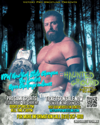 Victory Pro Wrestling returns to Pro Game Sports in Bay Shore on Saturday night, October 11, 2025 for Haunted Ground
