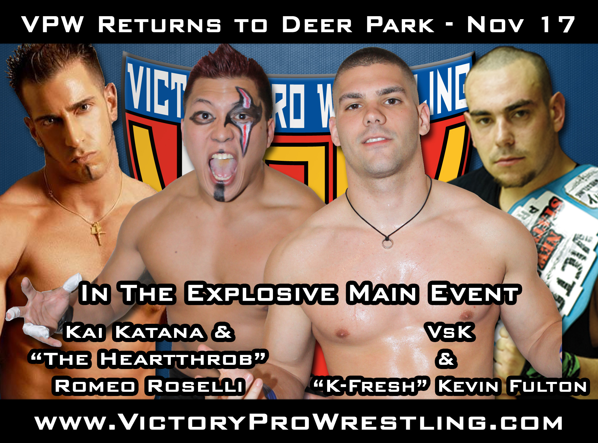 Taking two separate paths, the impressive young superstar and experienced ring veteran will join forces when they face two of VPW’s most favorite wrestlers, VsK and “K-Fresh” Kevin Fulton.