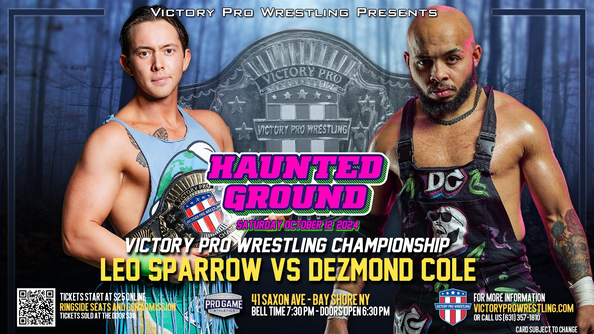 With each competitor holding one win over the other, their upcoming match at Haunted Ground will be the deciding factor. Will Leo Sparrow retain his title and once again hear the words, “And… still…” or will Dezmond Cole’s seven-year journey finally culminate in becoming the Victory Pro Wrestling Champion?