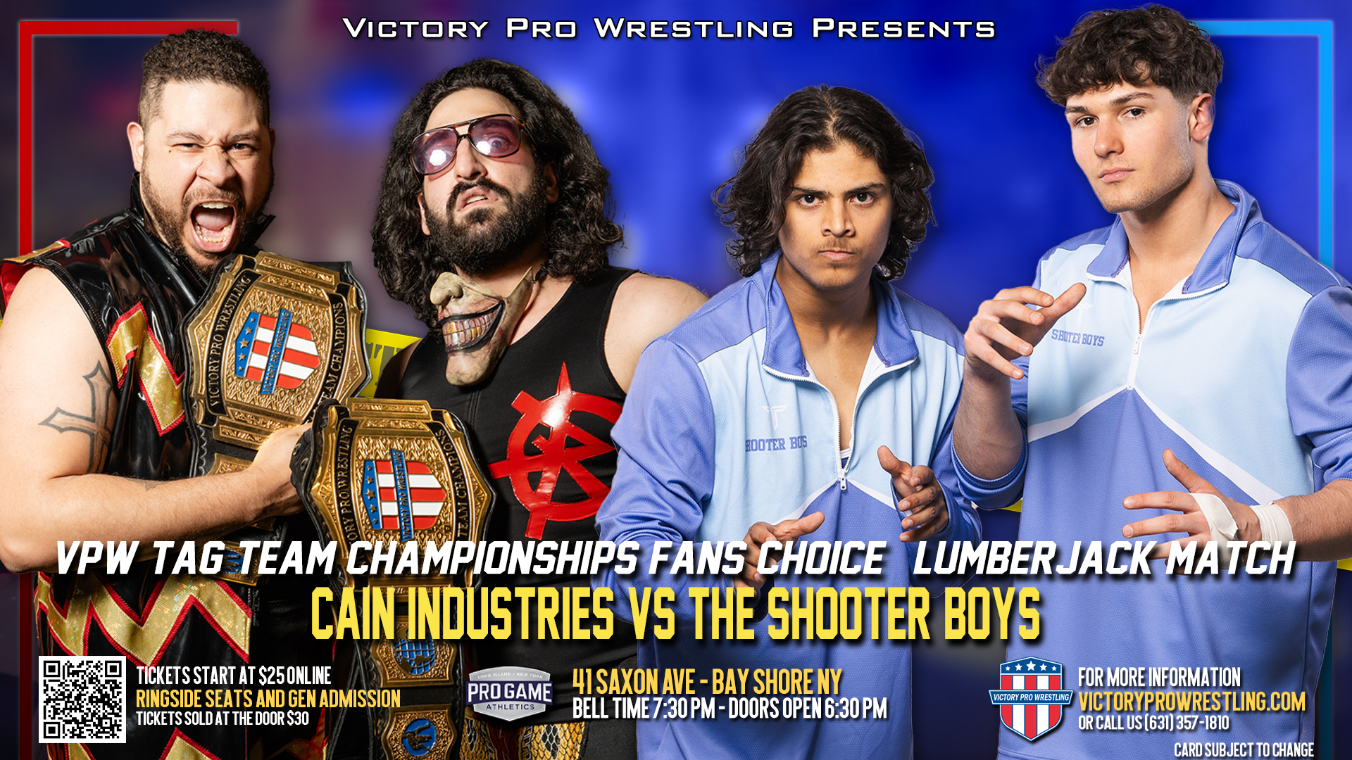 Fan-selected stipulations, championship clashes, and unresolved rivalries take center stage as Victory Pro Wrestling returns to Pro Game Athletics in Bay Shore on Saturday night, December 14 for VPW 182: Disorderly Conduct: Fans Choice 9!