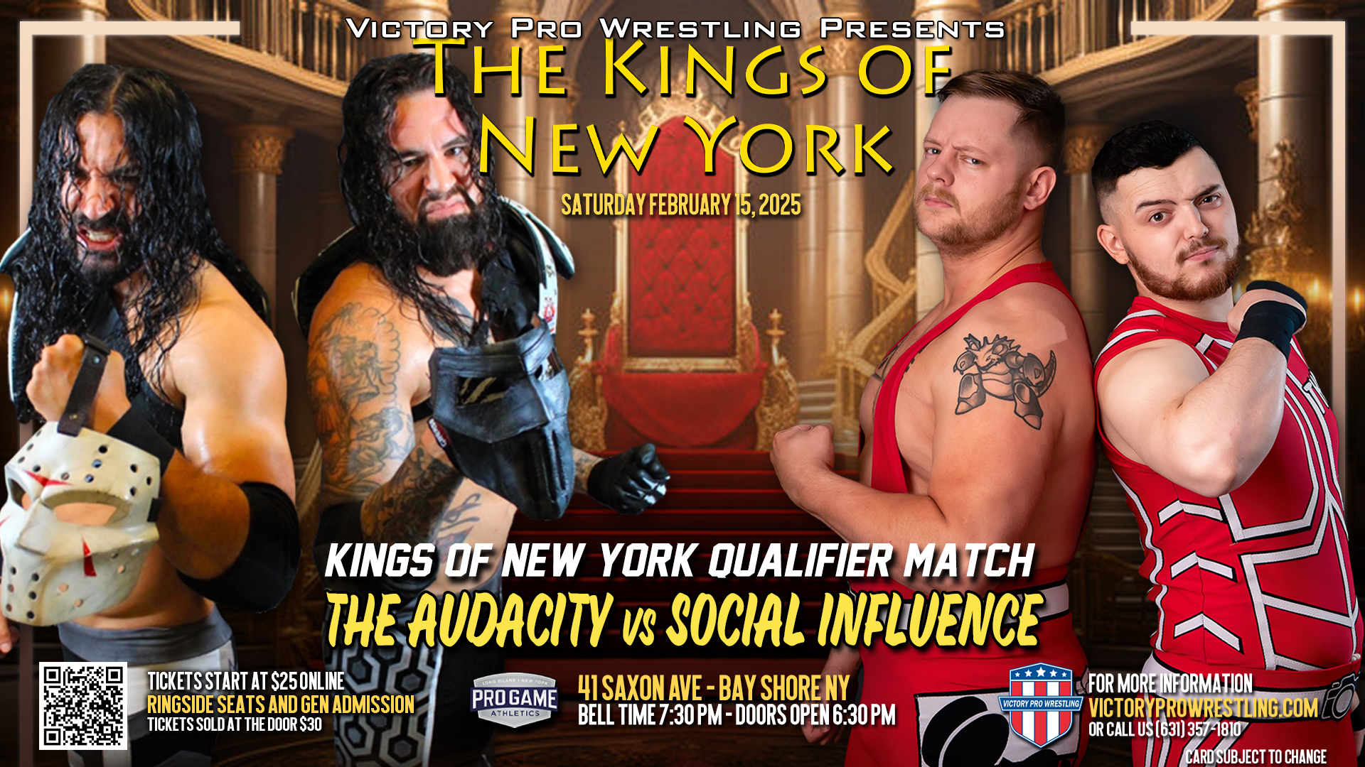 Victory Pro Wrestling returns to Pro Game Athletics in Bay Shore on Saturday night, February 15, 2025 for VPW 184: The Kings of New York