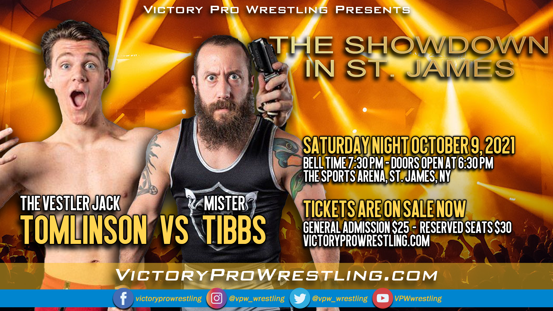 Mister Tibbs is a 13-year veteran who was a student of the original VPW training program under the guidance of world-renowned international superstar Ricky Reyes. He would capture the VPW Championship. The VPW Tag Team Championships on three occasions with three partners. The only competitor to hold the New York State Championship, Victory Pro Wrestling championship, all while donning the crown of the King of New York.