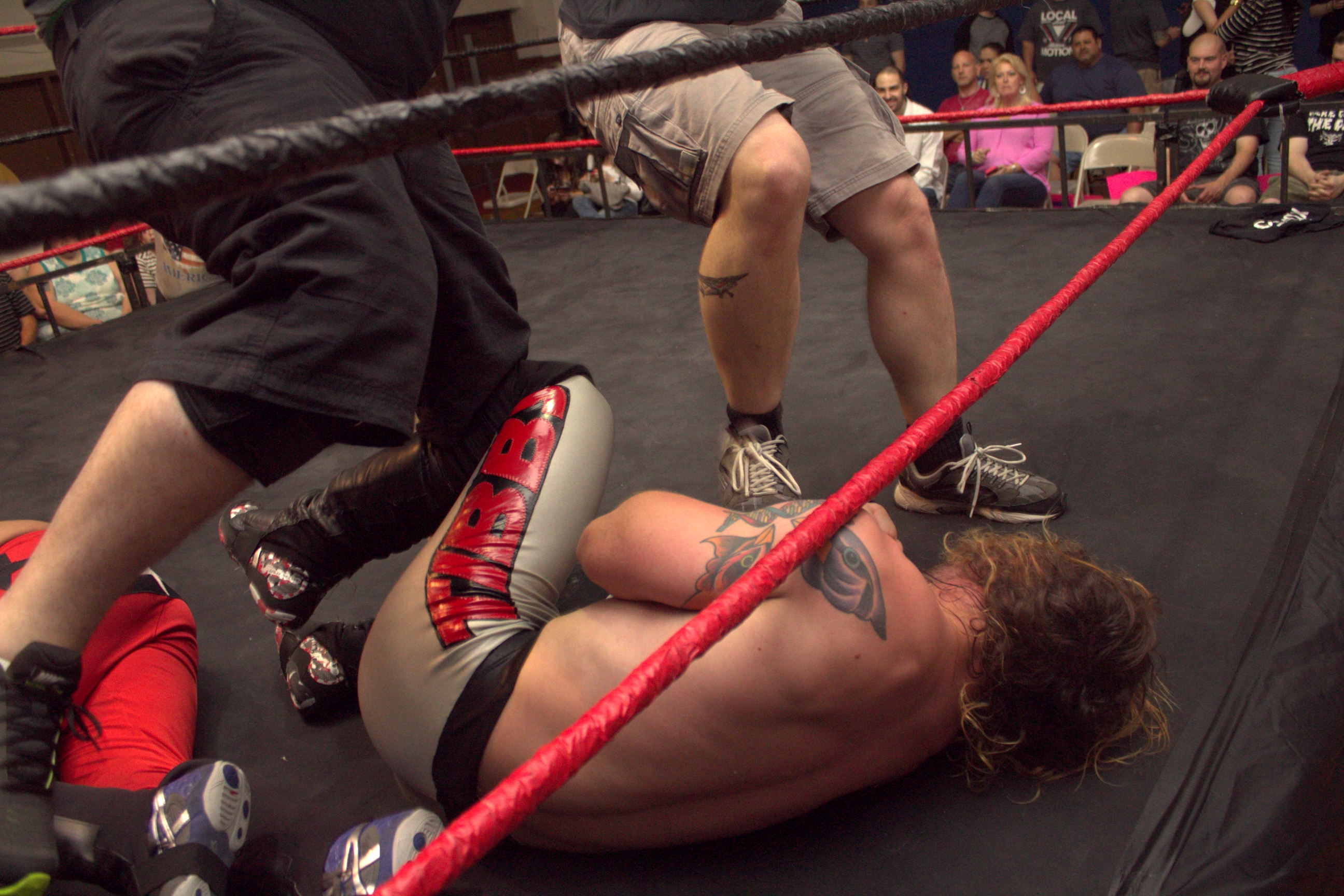 Inside the ring, outside the ring, these two tore it up and kept the fans at the edges of their seats. Finally, a roll-up by EJ Risk scored the victory.