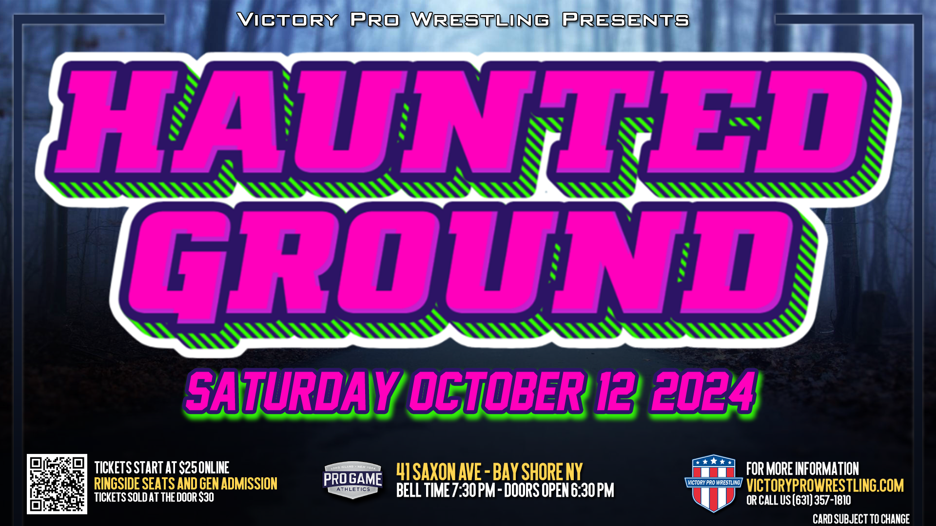 Victory Pro Wrestling presents VPW 180: Haunted Ground Saturday night October 12, 2024, when we return to Pro Game Athletics in Bay Shore.