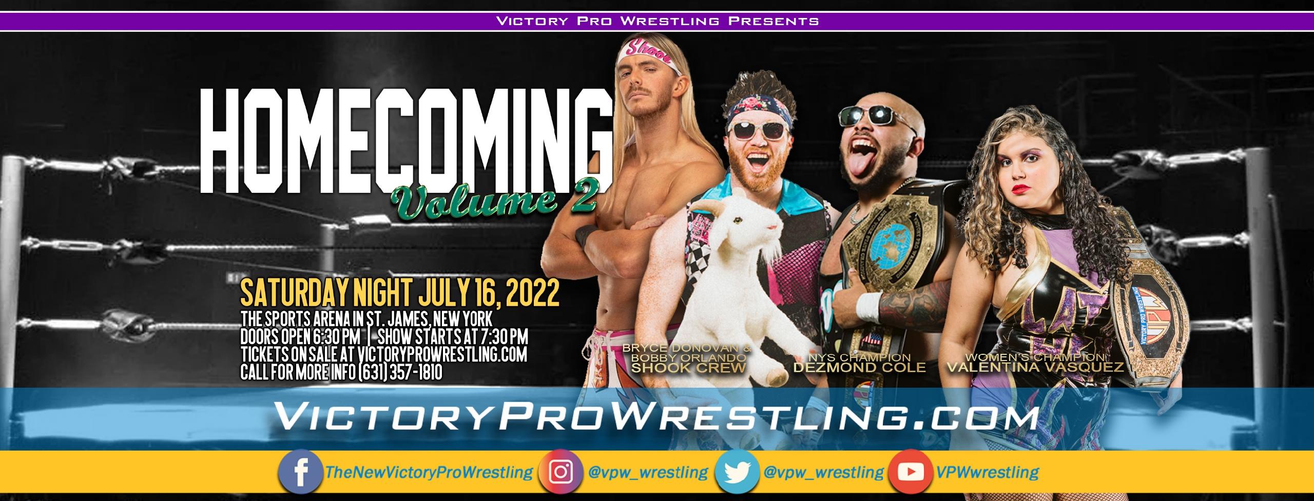 Victory Pro Wrestling presents VPW 153: Homecoming Volume 2 when we return to the Sports Arena in St. James Saturday July 16, 2022.