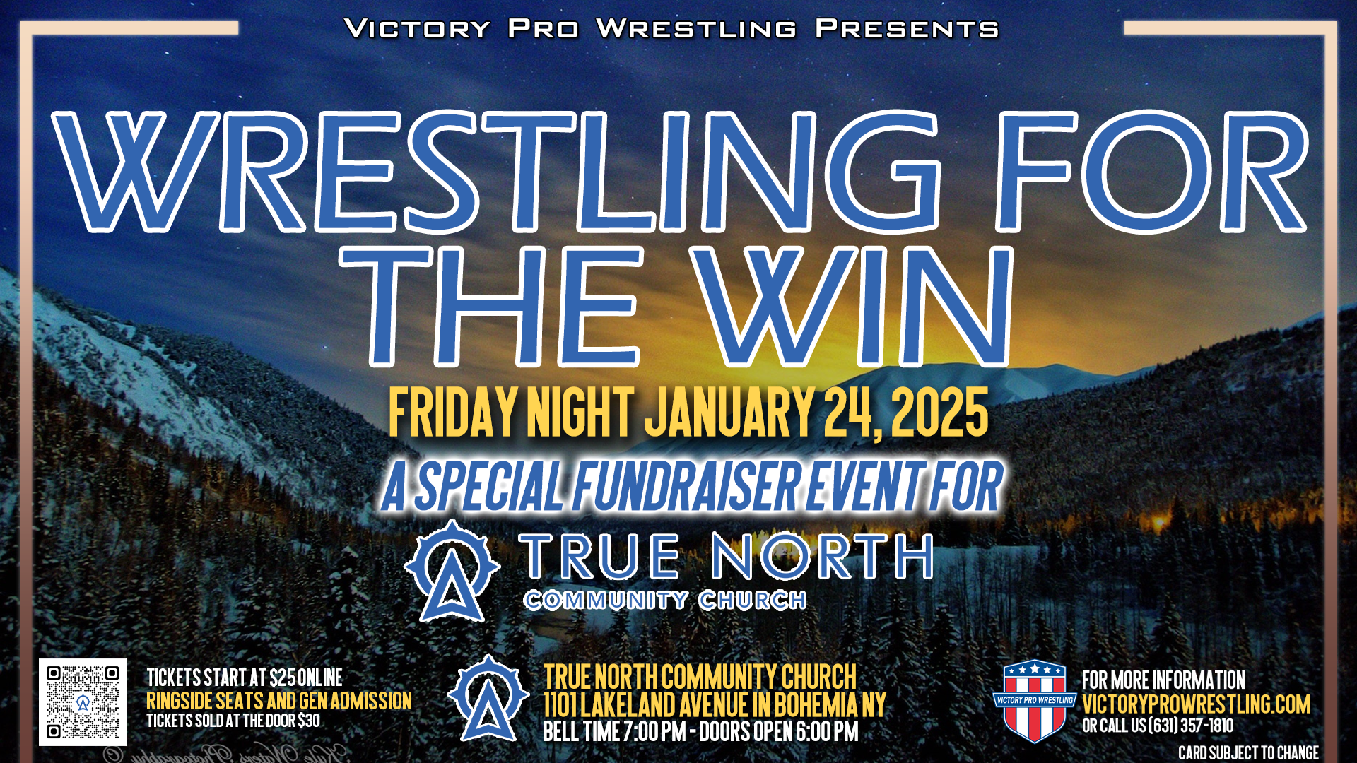 Victory Pro Wrestling travels to Bohemia for a fundraiser event at True North Community Church in Bohemia, New York, Friday Night January 24th for VPW 183: Wrestling for the Win