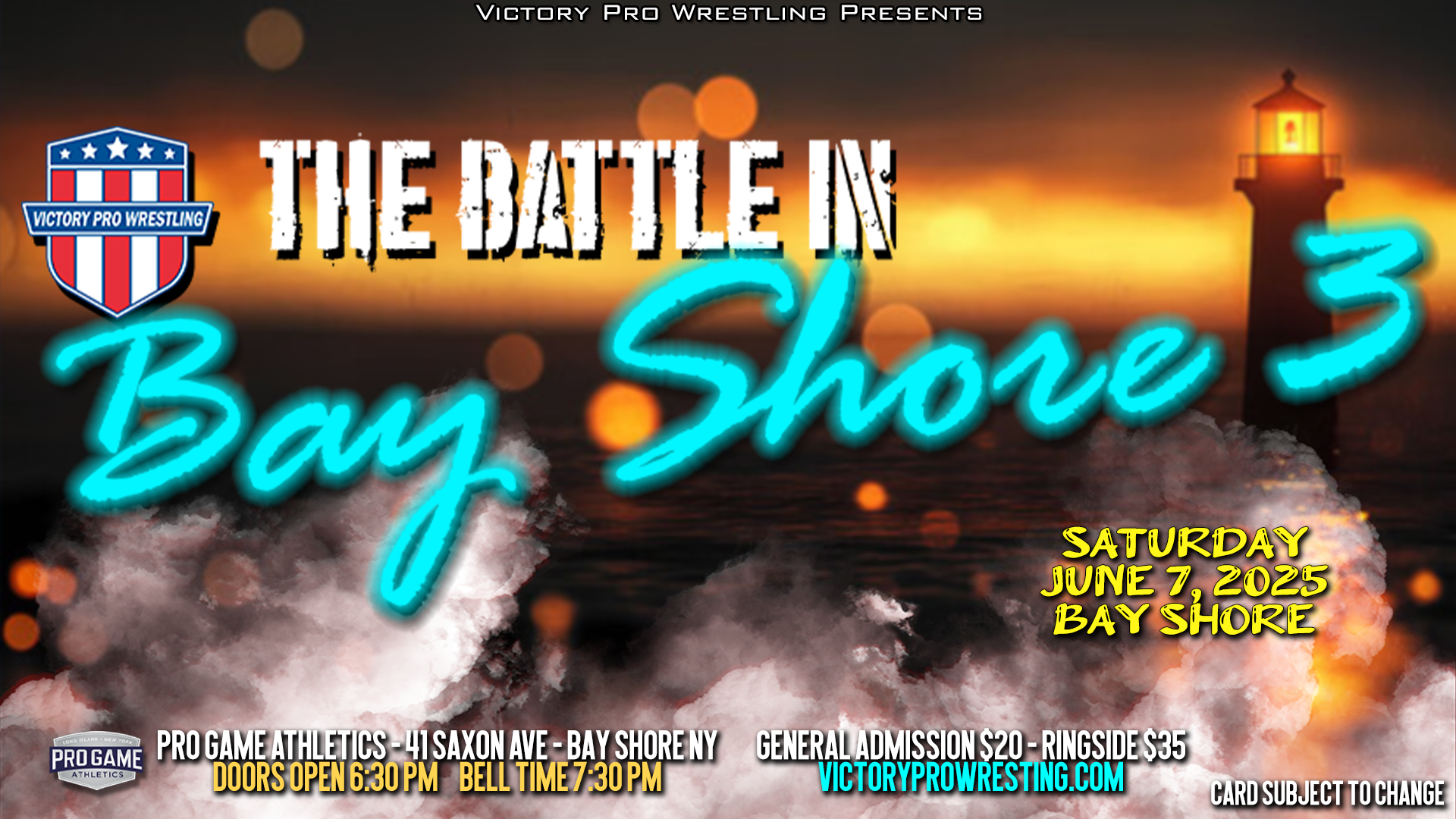 Victory Pro Wrestling returns to Pro Game Athletics in Bay Shore on Saturday night, June 7, 2025 for VPW 188: The Battle in Bay Shore 3