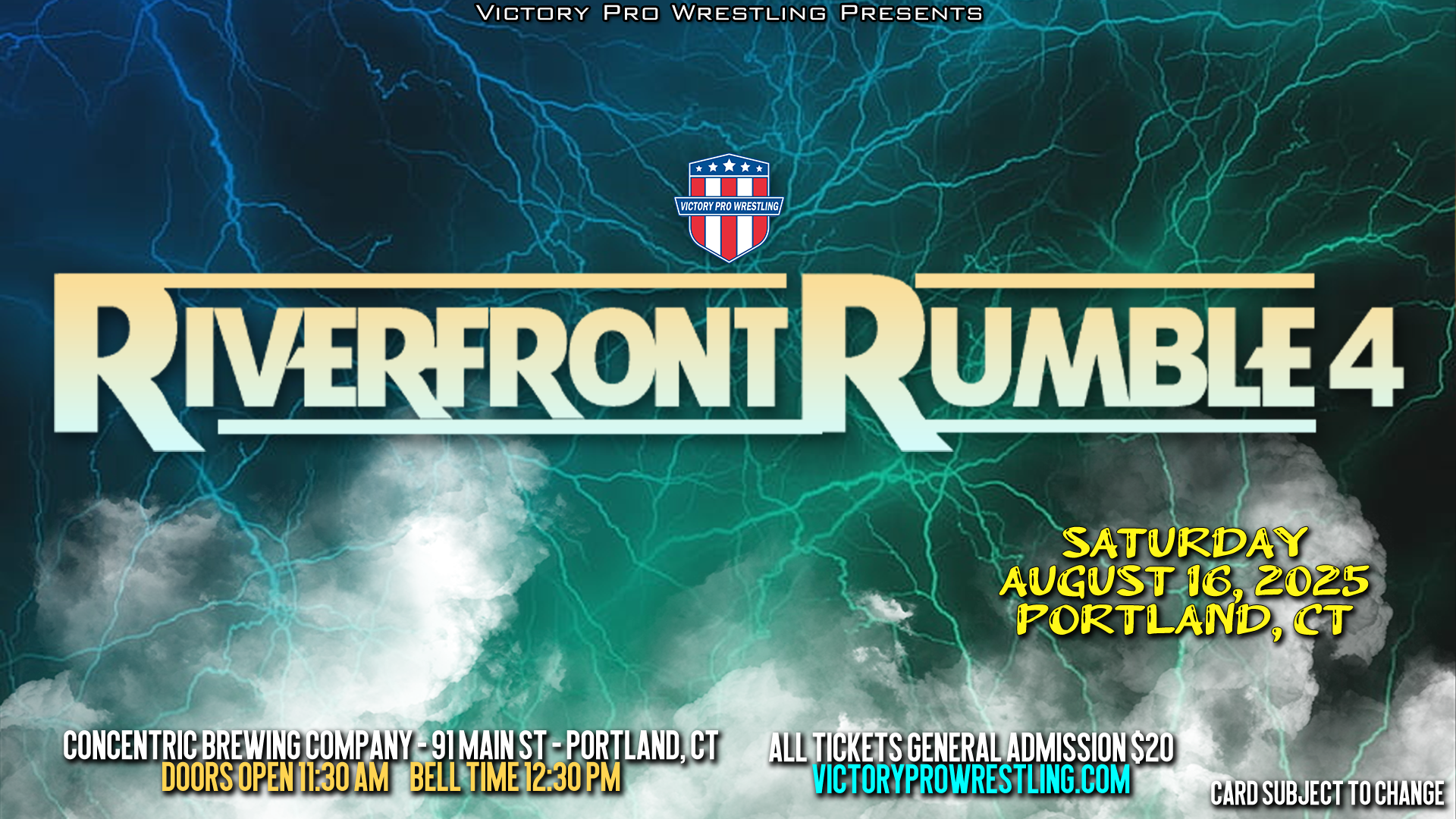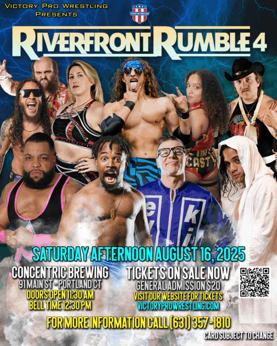 Victory Pro Wrestling returns to Concentric Brewing Company in Portland, CT on Saturday afternoon, August 16, 2025 for Riverfront Rumble 4
