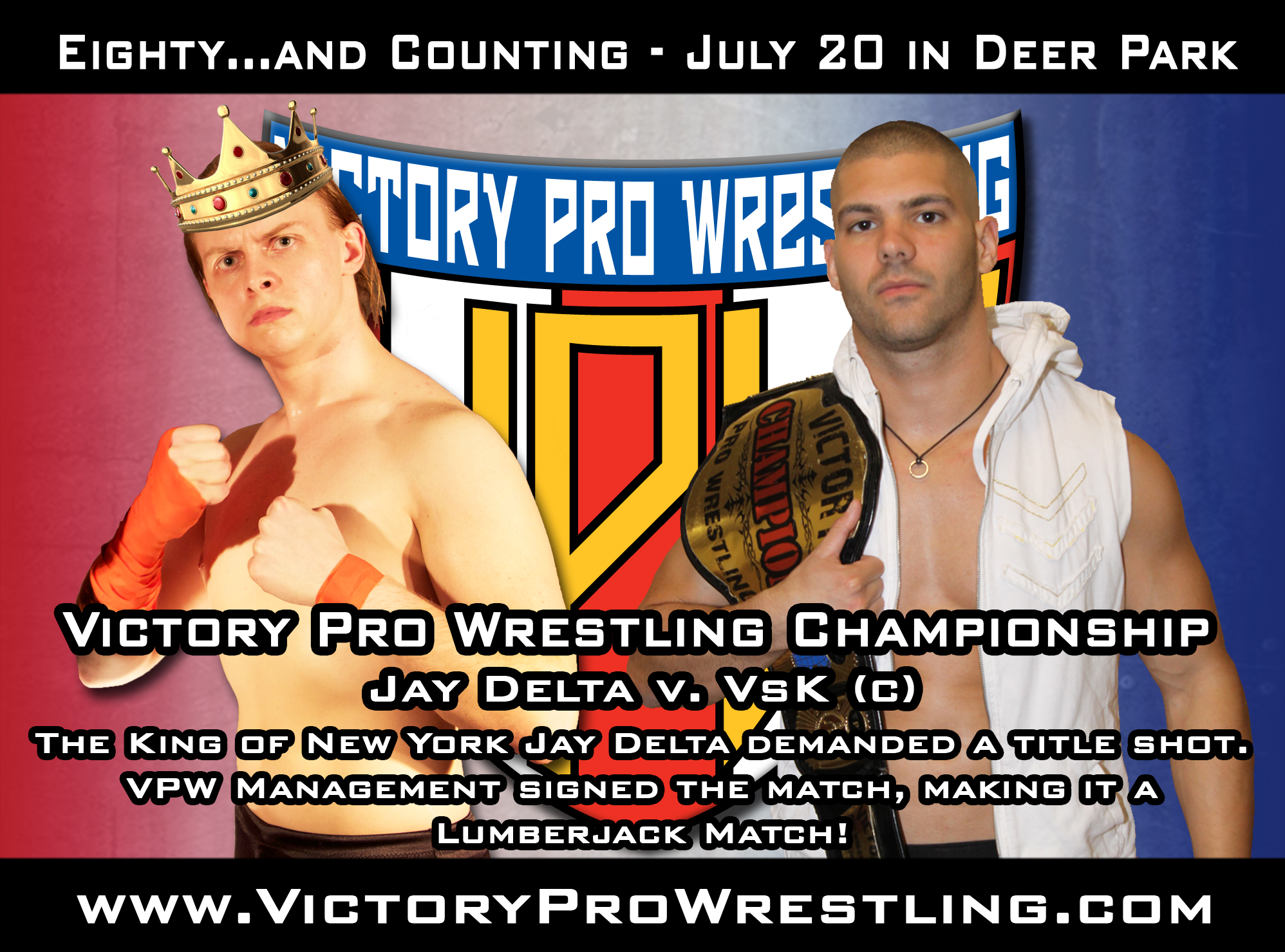 At Upper Limits, 2013 King of New York Jay Delta demanded a title match against the Victory Pro Wrestling champion VsK. During the show, VPW Management confirmed the match for “Eighty…and Counting” on July 20.