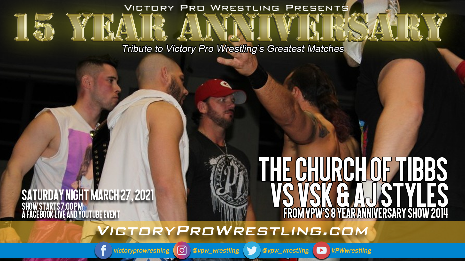 Victory Pro Wrestling’s next online event 15 Year Anniversary is coming your way Saturday March 27 on Facebook Live and YouTube.