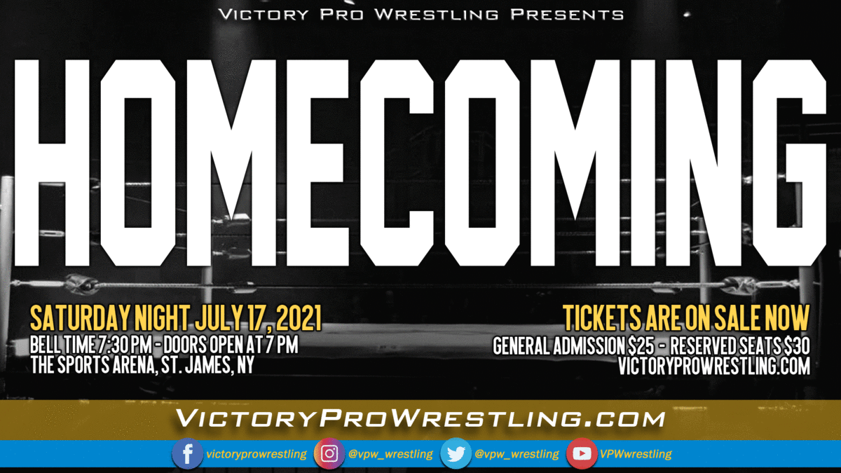 The announcement everyone was waiting for… Victory Pro Wrestling returns to live fans for the first time since March 2020 when we present “Homecoming” at the Sports Arena in St. James.