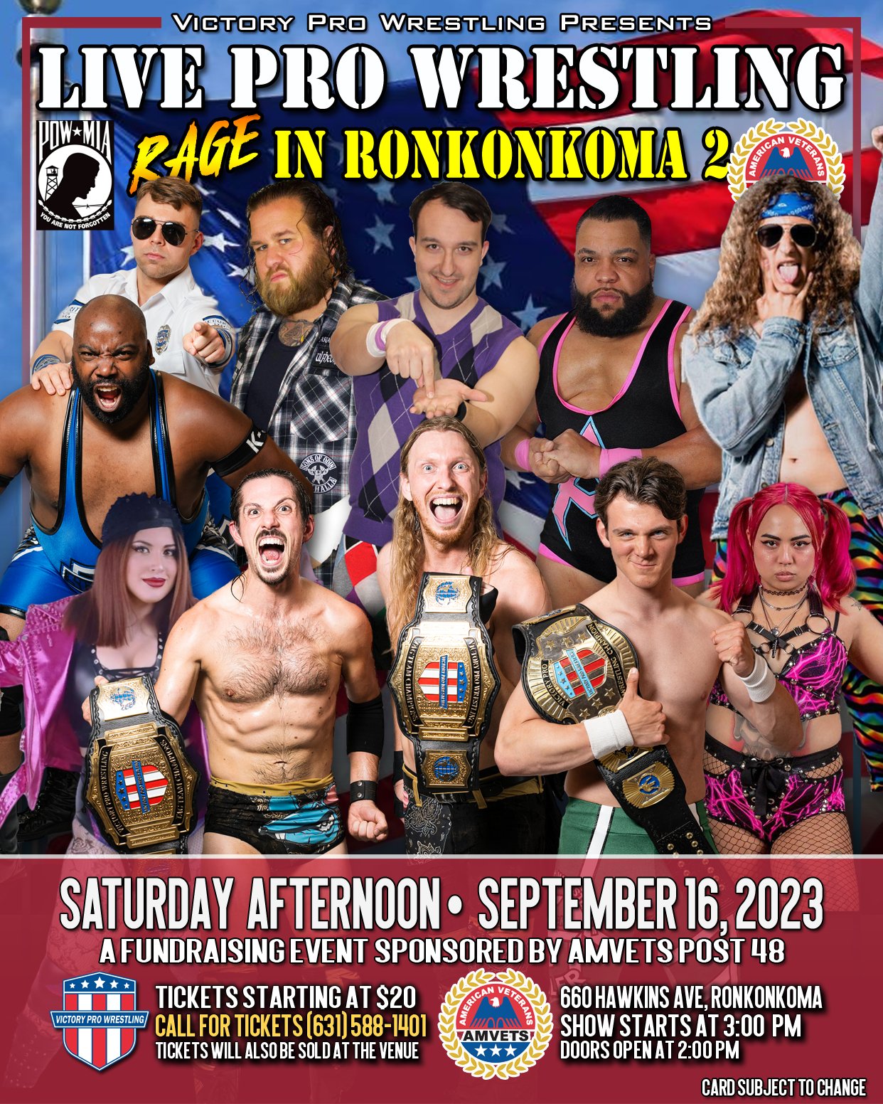 Victory Pro Wrestling hits the road again for a fundraising event at AMVETS Post 48 NY in Ronkonkoma for “Rage in Ronkonkoma 2”