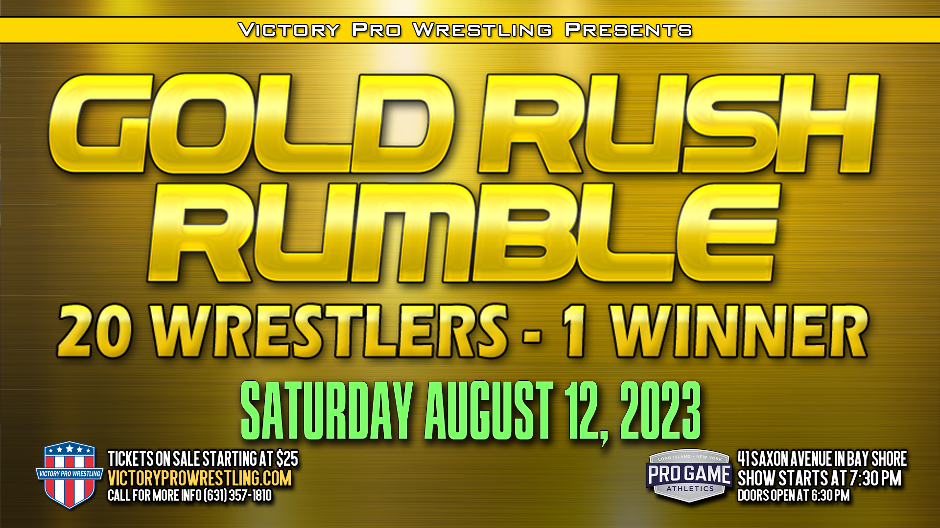 What will happen Saturday night August 12 when Victory Pro Wrestling returns to Pro Game Athletics in Bay Shore for The 2023 Gold Rush Rumble?
